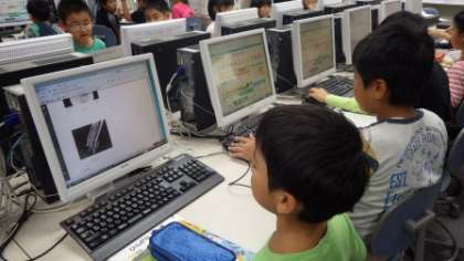 総合的な学習の時間にパソコン室で昆虫の生態について調べました。