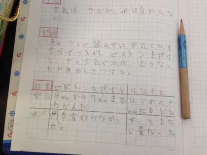 理科 空気や水をおしちぢめると 【4年1組】 10/14