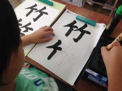 毛筆書写 「竹笛」 【4年1組】 10/15