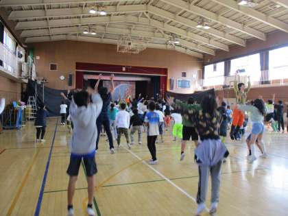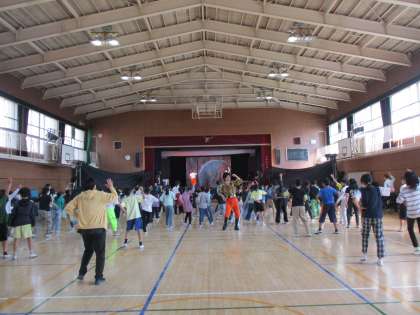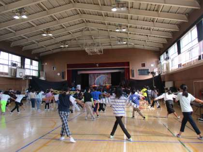 ミュージカルを鑑賞した後、体験ダンスワークショップがありました。ダンスを教えていただいて、曲に合わせてみんなで元気よく踊りました♪