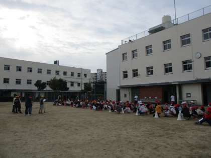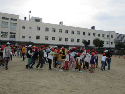 今日は、「じゃんけん列車」をしました。たてわり班の先頭どうしがじゃんけんをして、負けたら自分の班の一番後ろに回るというルールです。先頭の人が何度も勝ち続けた班もあれば、先頭がどんどん変わって一周回った班もあり、とても盛り上がっていました。