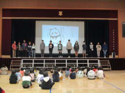 毎日している放送の仕事や、児童集会の計画や進行などについて、写真を見せたりクイズをしたりして、ニュース風に発表していました。これからも、楽しい児童集会を楽しみにしています♪