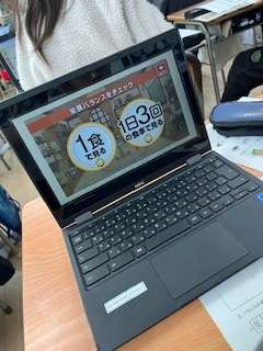 タブレットを使って、栄養バランスの良い献立について考えました。