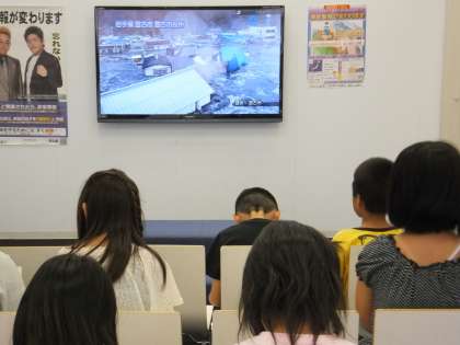 4年生の社会見学では、午後から津波・高潮ステーションに行きました。津波や高潮の怖さを知り、災害からの身の守り方を学びました。