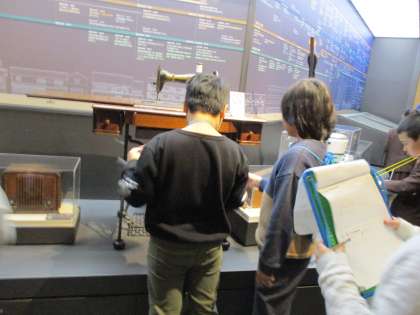 次に、明治・大正・昭和の大阪のまち・住まいと暮らしの展示物を見ました。天神祭りの模型が大人気でした!子どもたちは、メモを取りながら熱心に見学していました。