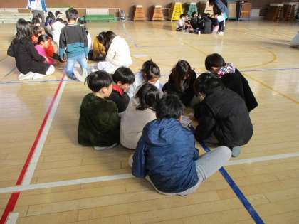 今日の児童集会は、「卒業を祝う会」に向けて、メッセージ作りをしました。5年生が中心となり、それぞれが心を込めて書いたメッセージを台紙に貼っていきました。