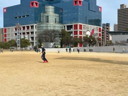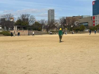 お昼ご飯を食べて、遊び係の企画のもと、みんなでおにごっこをしています。
