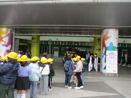 Asueアリーナ大阪で行われている「2024国際親善女子車いすバスケットボール大阪大会」の日本vsオーストラリアの試合を、全学年で観戦してきました。応援用のハリセンを1つずつもらって、音を鳴らしながら大きな声でかけ声をかけました。時間の都合上、第3クォーターまでしか見ることはできませんでしたが、車いすでコートを駆け回るスピード感や、パス回しやシュートなどの高い技術力を、間近で観ることができました。