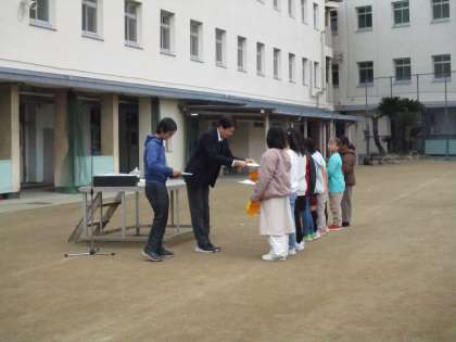 また、かきぞめ大会に出品し賞をいただいた児童に、賞状が渡されました。おめでとうございます♪