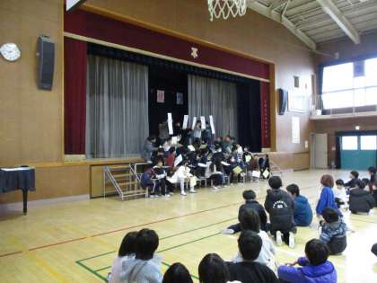 その後、在校生は6年生からへプレゼントをもらいました。
