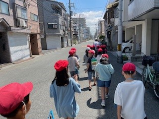 3年生は、社会科の学習で校区たんけんに行きました。コンビニエンスストアやパン屋などを地図に書き込み、自分たちのまちのことについて調べました。