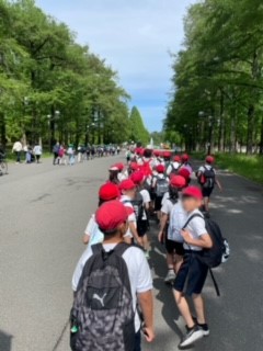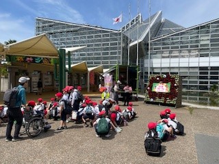 今日は晴天に恵まれ、子どもたちは元気に活動していました。咲くやこの花館では、班に分かれてクイズラリーをしました。広場でお弁当を食べて、学校には予定通りの時間に帰ってきました。