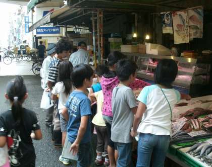 10月8日(火)3年生の社会見学で八幡屋商店街に行きました。目的は「お店の人にインタビューをしよう!」です。事前に考えた原稿をもとに、お魚屋さんや八百屋さん、果物屋さんにインタビューをお願いしました。商店街の温かい雰囲気の中で、子どもたちはのびのびと活動することができました。