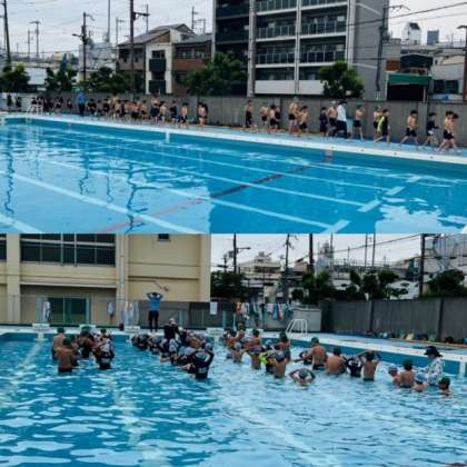 小学校生活で初めてととなる1年生は、2年生・6年生と一緒に入水しました。