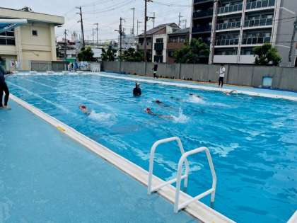 今年は梅雨入りが遅く、プール開きは晴れ間がのぞくなかでの実施となりました。