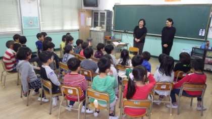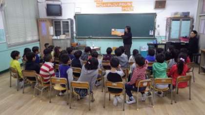 最初に、そうそくに火をともして教室をおはなしの世界にしてもらいました。それから、いろんなお話や絵本を聴いて見て、子ども達はお話の世界に引き込まれていきます。次第に、姿勢もだんだん前のめりになっていました。