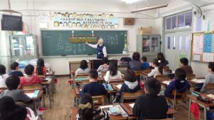 珠算協会よりゲストティーチャーをお迎えし、そろばんの基礎を教えていただきました。