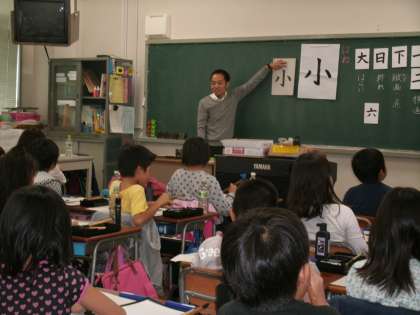 3年1組は、書写で「はね」の筆の動きや方向を意識しながら、文字の中心を考えて書きました。
