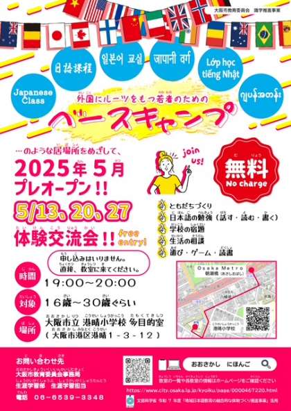 このたび、大阪市教育委員会 生涯学習担当より、「外国につながる若者のベースキャンプ」プレオープンのご案内が届きました。