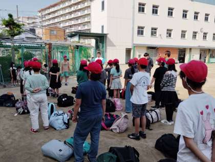 本日より、5年生が岬町にある大阪府青少年海洋センターで自然体験学習を行います。