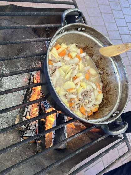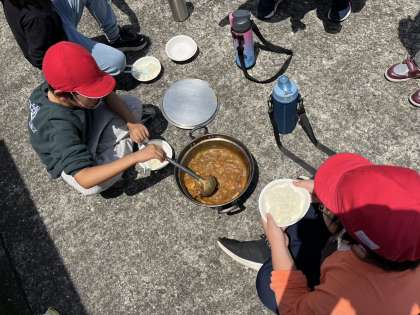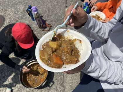 薪で火を起こし、野菜を切って、煮込んだカレーは、どの班もとてもおいしそうに仕上がりました。