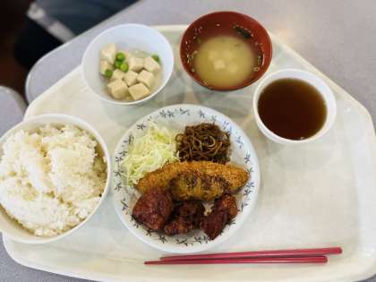 たくさん動いたあとのごはんは格別で、子どもたちは「おいしい!」と笑顔で食べています。