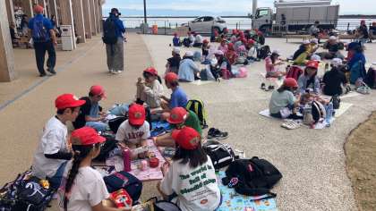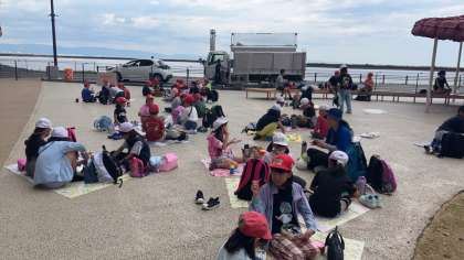 中学年の児童は、午前中の見学や体験を終え、待ちに待ったお弁当タイムに入りました。