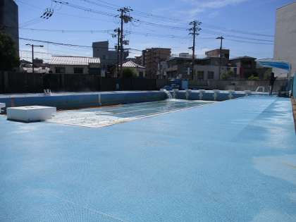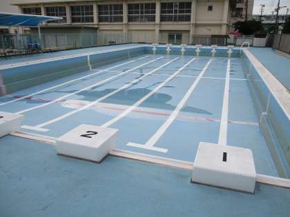 6月16日(月)のプール開きに向けて、業者さんにプール清掃をしていただきました。隅々までていねいに清掃していただいたおかげで、とてもきれいになりました。今にもプールから子どもたちの歓声が聞こえてきそうです。プール開きが今からとても楽しみです。