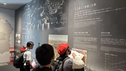 展示では、大阪大空襲の様子や戦時中の人々のくらしについて学びました。写真や資料、実物展示などを通して、戦争の悲惨さや当時の子どもたちの生活の様子を知ることができました。