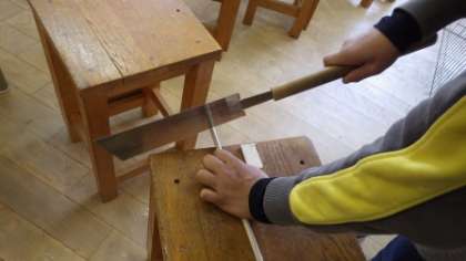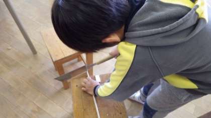 4年生は、のこぎりを使った作品づくりに取りかかりました。