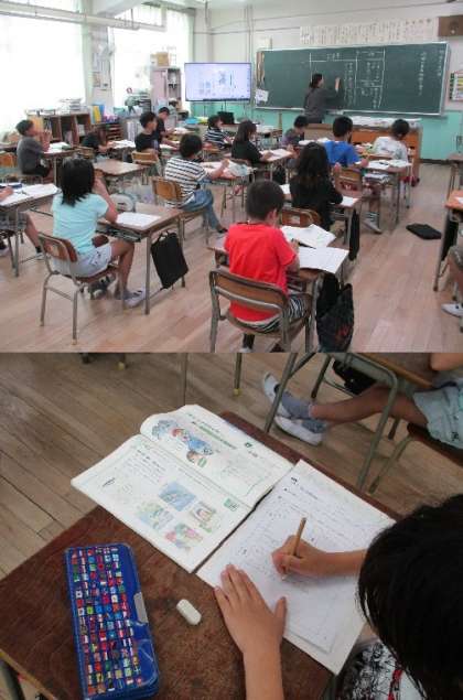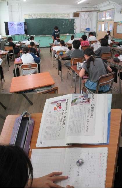 1学期も残り少なくなってきましたが、暑い中、子どもたちは熱心に学習に取り組んでいました。写真は<上:4年生><中:5年生><下:6年生>の学習の様子です。
