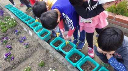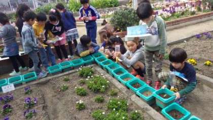 子ども達は、早く咲かないかなと水やりをしながら待っています。
