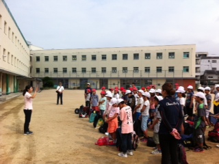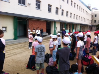 天気も回復してきました。5年、6年の子ども達は全員集合しました。出発式も終わり、元気に出発です。いってきます( ´ ▽ ` )ノ