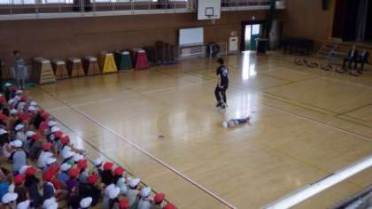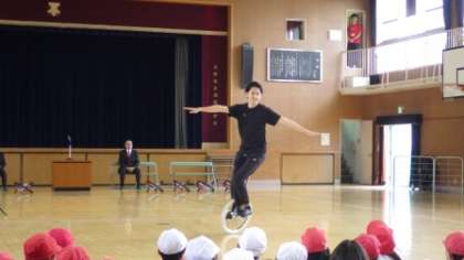 さらには、寝転んだ人を一輪車で飛び越すという大技も見せていただき子どもたちは大盛り上がりでした!