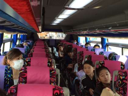 修学旅行バスの中