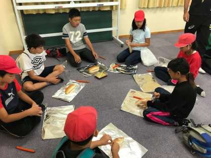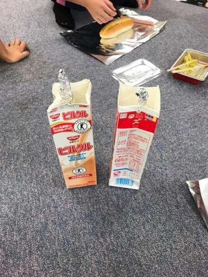 具が入ったパンをアルミホイルで包み、牛乳パックに入れ、そこに火をつけて燃やしました。