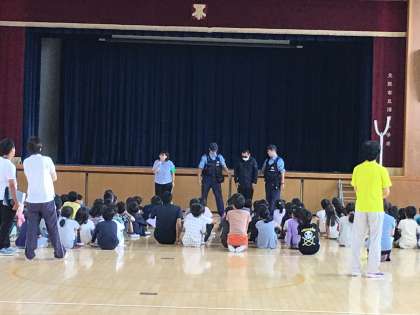 港警察署の方々に協力いただき、不審者を発見した際の、教職員の動き、子ども達の動きをそれぞれ確認しました。
