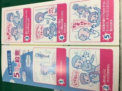その後、「みんなで守ろう!5つの約束」のお話を聞き、防犯への意識を高めました。
