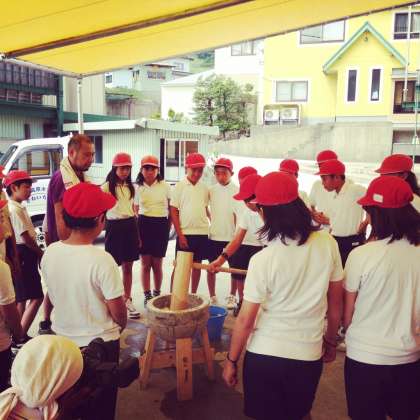 6年生は餅つきをしました。