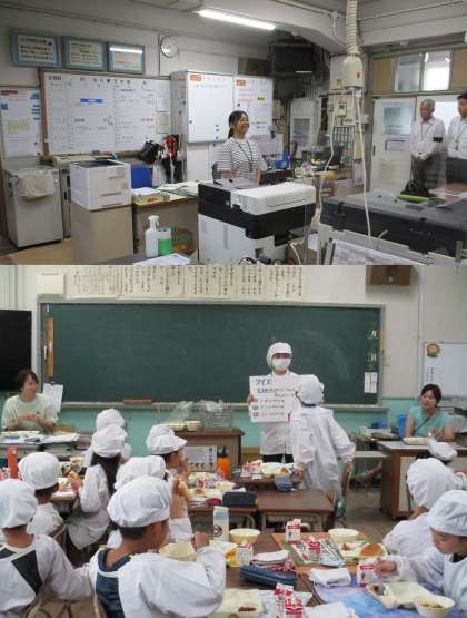 今日、9月5日(金)で5日間の教育実習が終了となりました。今日は、献立にかかわる食材についてのクイズを通した食育に加えて、給食室での業務や食に関する指導(研究授業)に取り組みました。