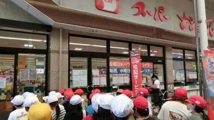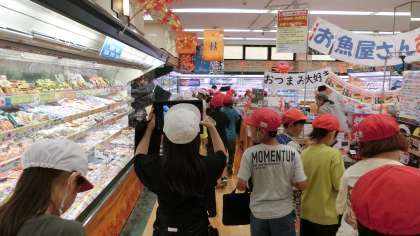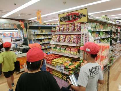 お店の中を見学させていただき、商品の並び方や工夫について学びました。普段は気づかないお店の裏側の工夫を知ることができ、子どもたちはとても興味深く話を聞いていました。