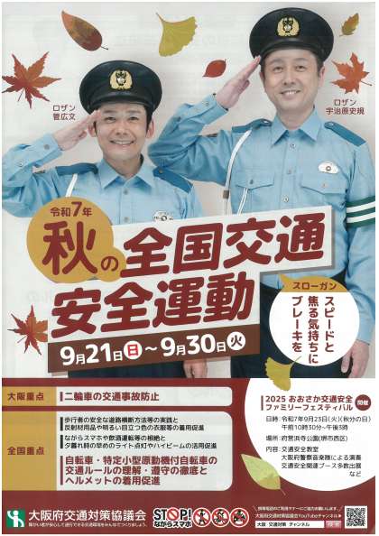 9月21日(日)から9月30日(火)にかけて、秋の全国交通安全運動が実施されます。