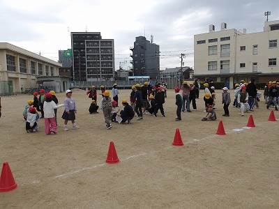 11月13日(木)の児童集会はゲーム集会で、「進化じゃんけん」ゲームをしました。「進化じゃんけん」とは、じゃんけんに勝つことで次の段階に進化していくゲームです。この日は「たまご」からスタートして「人間(ゴール)」を目指して、じゃんけんを楽しんでいました。和気あいあいとした雰囲気の中、子どもたちはゲームを楽しんでいました。