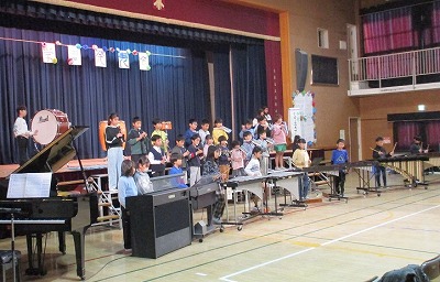 とても元気な曲としっとりとした曲、反対の性格の曲を上手に演奏していました。写真は、とても元気な曲「ミッキーマウスマーチ」の合奏の様子です。