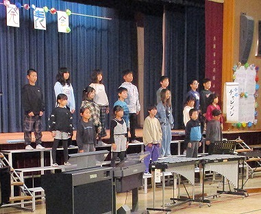 写真は、元気いっぱいな4年生らしい合唱「チャレンジ」の様子です。合奏も息がぴったり合っていて、上手でした。