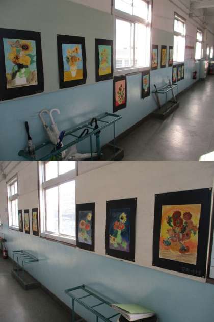 6年生が図画工作科の学習で取り組んでいた「テクスチャーアート」の作品が完成し、掲示されていました。どの作品も力作ぞろいでした。