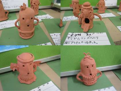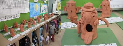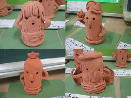 図画工作科の学習で、ねん土を使って「はにわ」を作りました。教室後ろのロッカーの上には、子どもたち一人一人が工夫を凝らして作った、個性あふれる、かわいい「はにわ」が並んでいました。