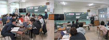 授業後は、教員がグループに分かれて授業の討議会を行い、講師先生によるご指導・ご助言をいただきました。今日の学びを、また明日からの授業実践に活かしていきます。