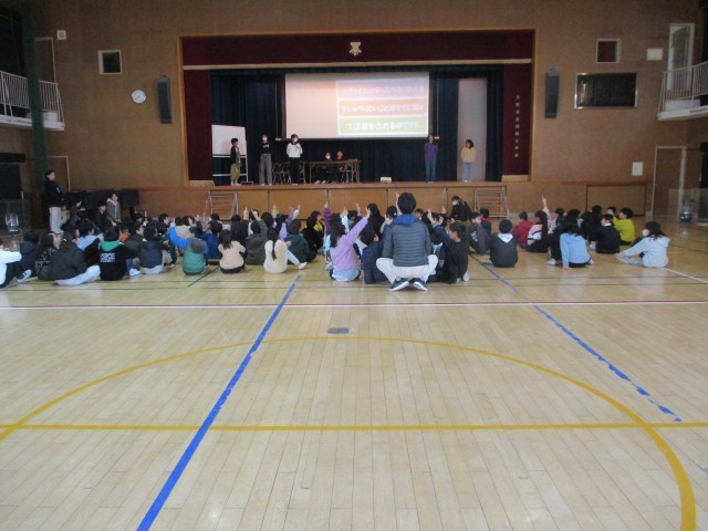 12月18日(木)の児童集会は、計画委員会の発表でした。「休み時間はチャイムの3分前に教室に戻る」「休み時間中に次の時間の学習準備をする」「授業開始のチャイムがなったら切り替える」といった学習の約束を劇仕立て・クイズ仕立てで『みんなはできていますか?』と問いかける発表でした。計画委員会のみなさん、ありがとうございました!