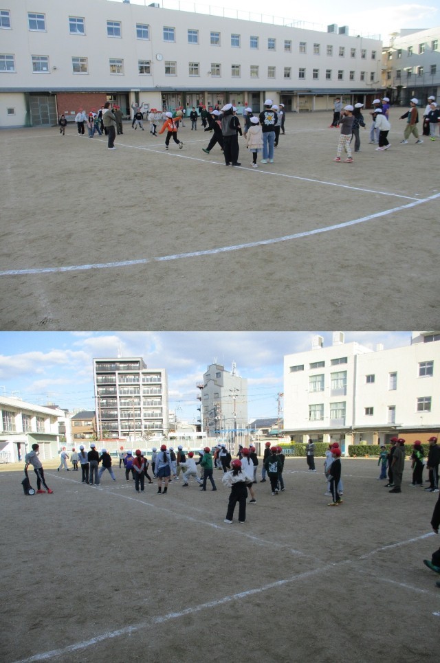 12月18日(木)の6時間目、5年生と3年生が異学年交流をしました。「けいどろ」「ドッジボール」といった遊びを通して交流を深めました。運動場には、仲良く、楽しく遊んでいる子どもたちの歓声が響いていました。